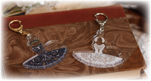 アクリルの透明感がモチーフを軽やかに引き立てます。