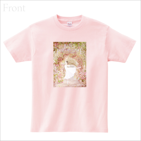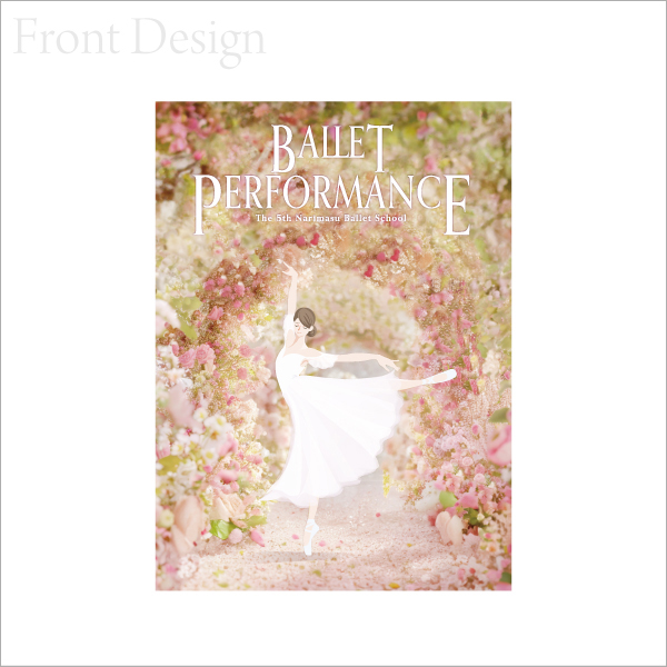 柔らかな光に包まれた花のトンネルに、白いロマンチック・チュチュのバレリーナを