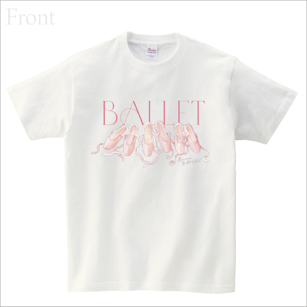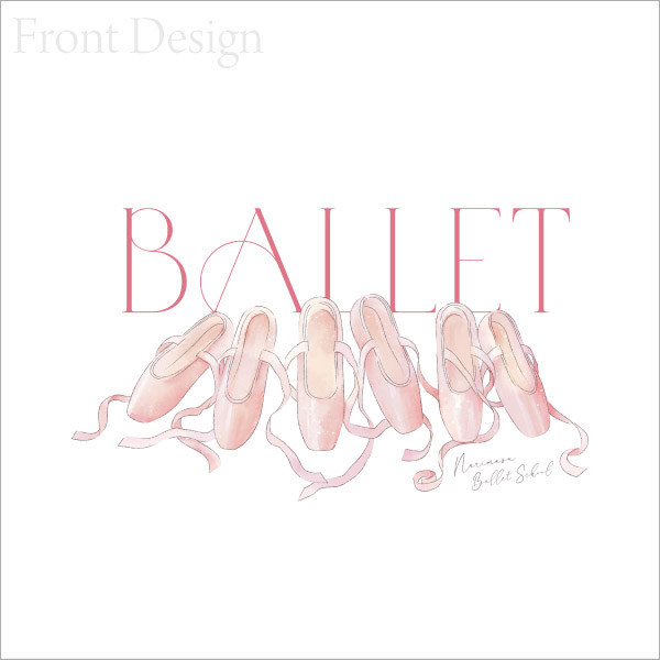 柔らかな水彩タッチのトウシューズとエレガントなフォントが調和した、