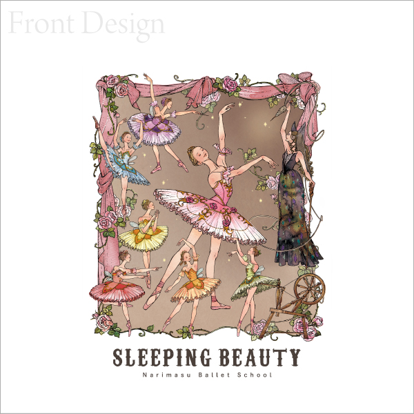 ノスタルジア・タッチで描かれたオーロラ姫と妖精たちのイラストTシャツです。