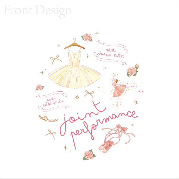 チュチュやトウシューズ、ティアラをやさしいタッチで描いたデザインです。