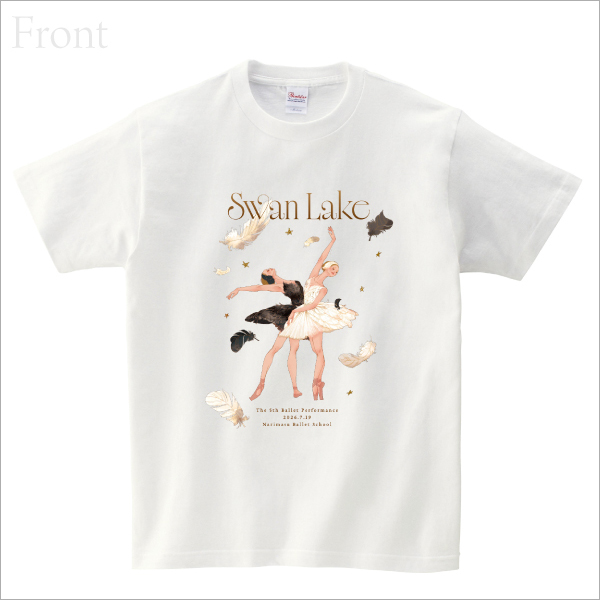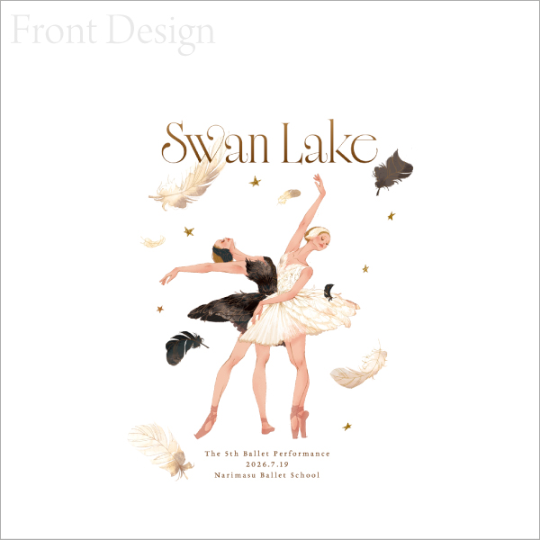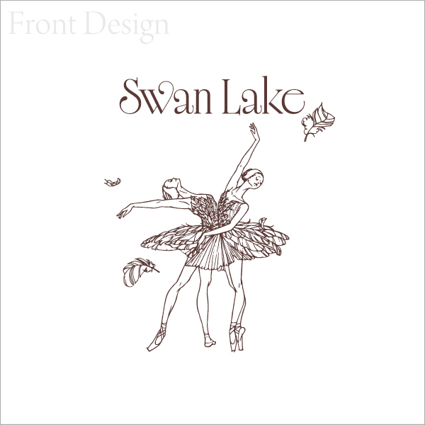 オデットとオディール、ふたつの姿の対比を流れるような金の装飾をアクセントにして、繊細な色づかいで描いています。